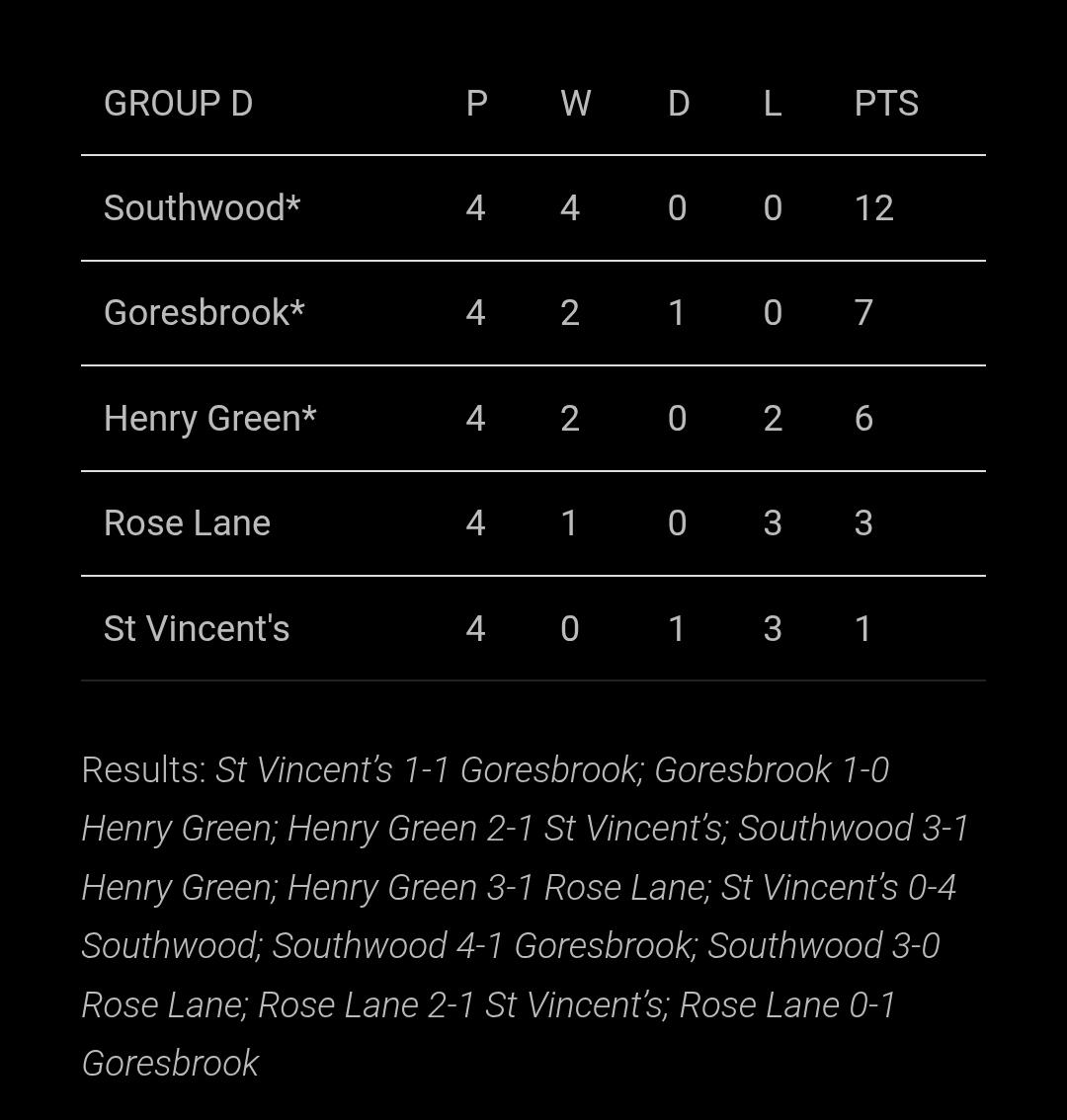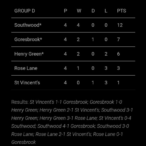 Southwood 3 v 1 Rush Green                                                                     Southwood 1 v 8 St Teresa Sparks