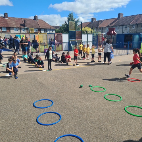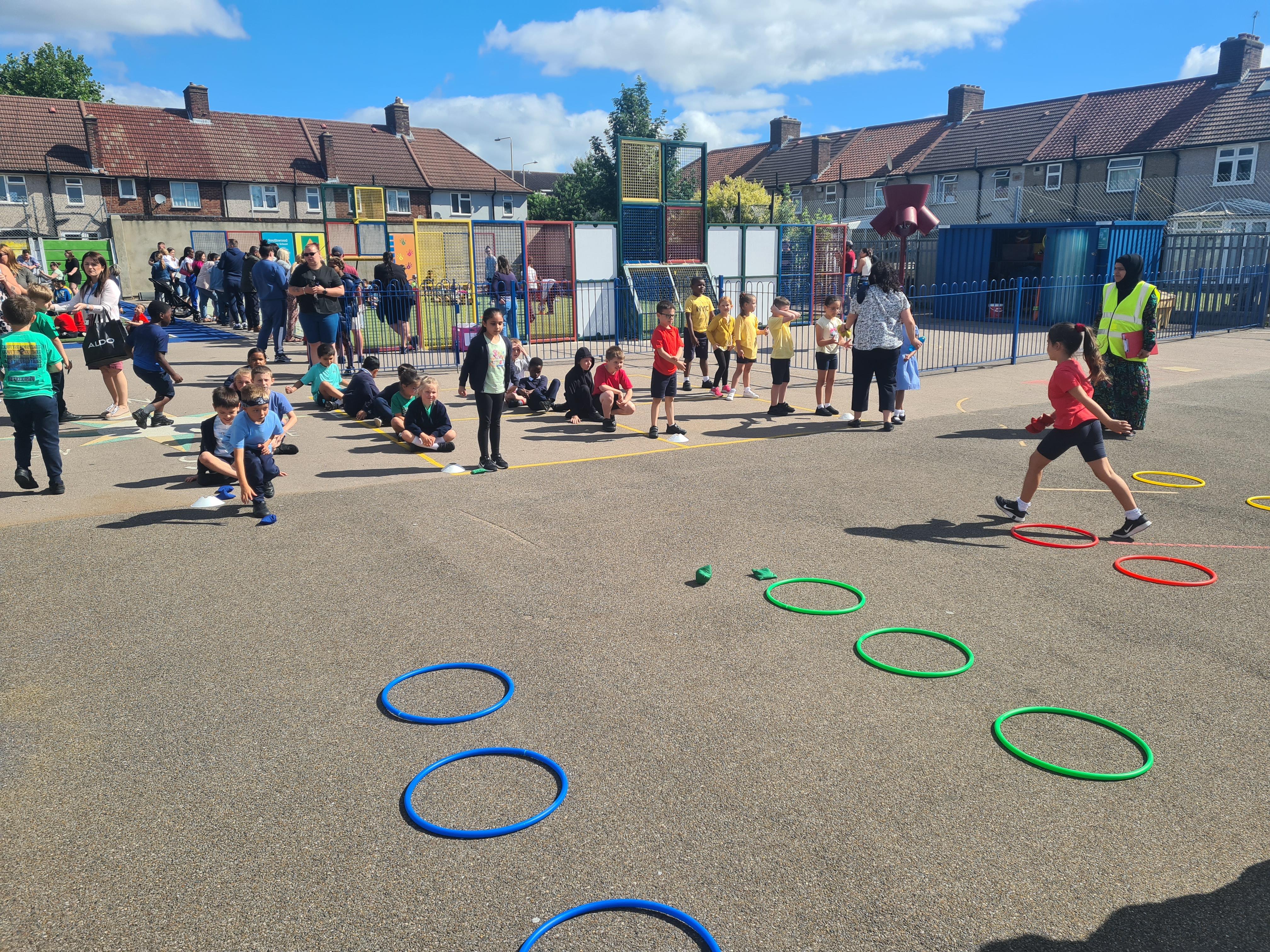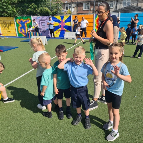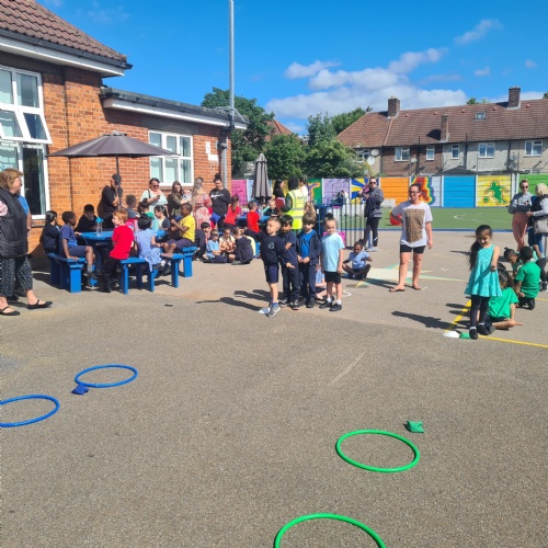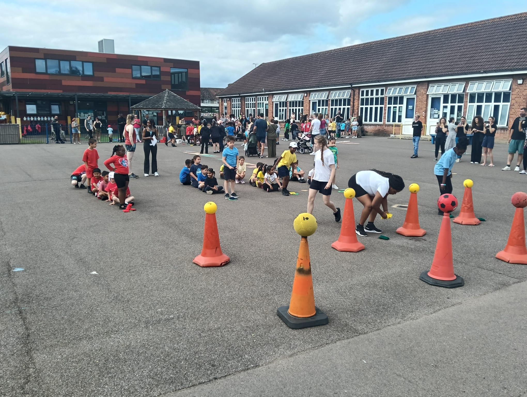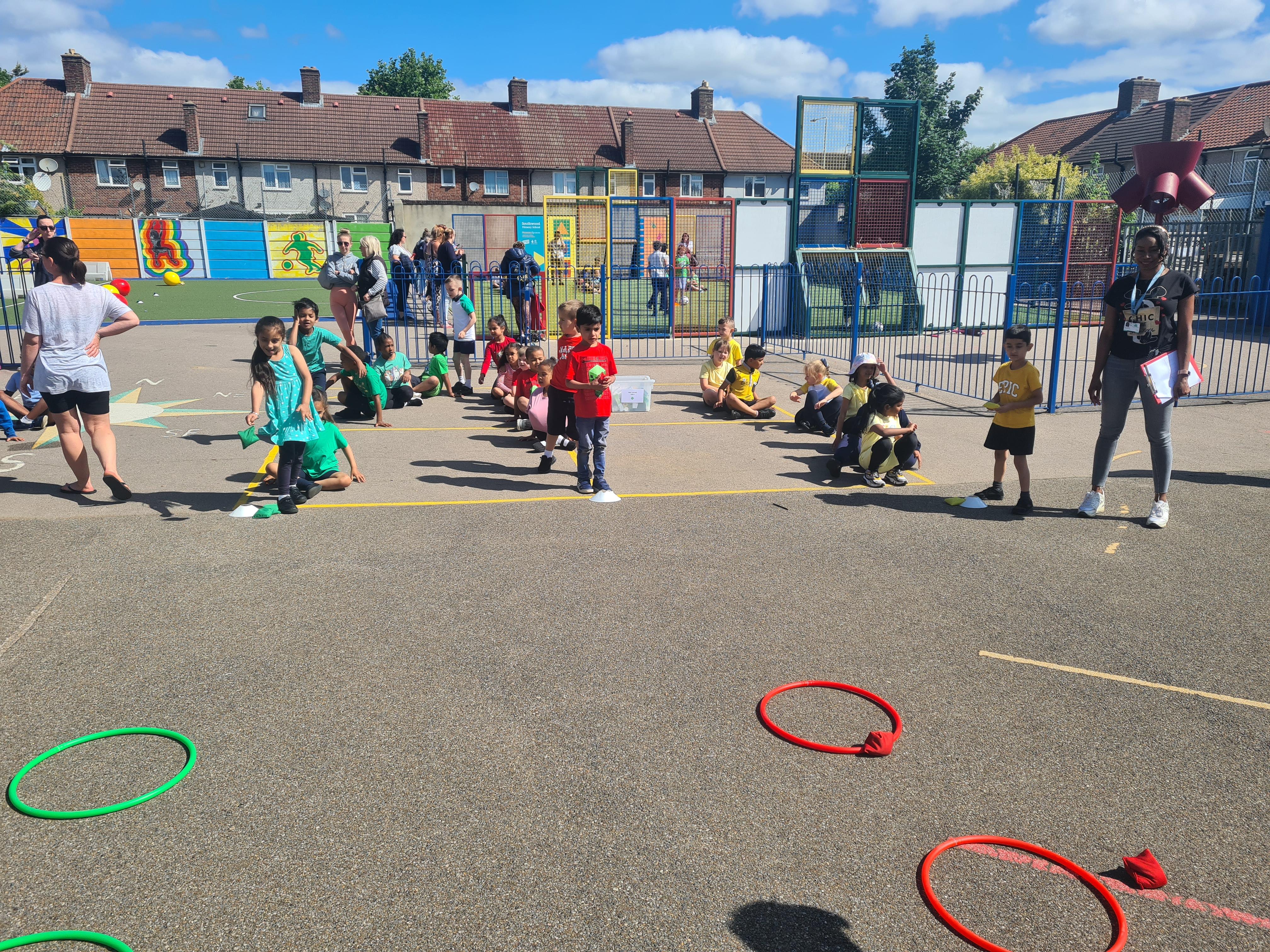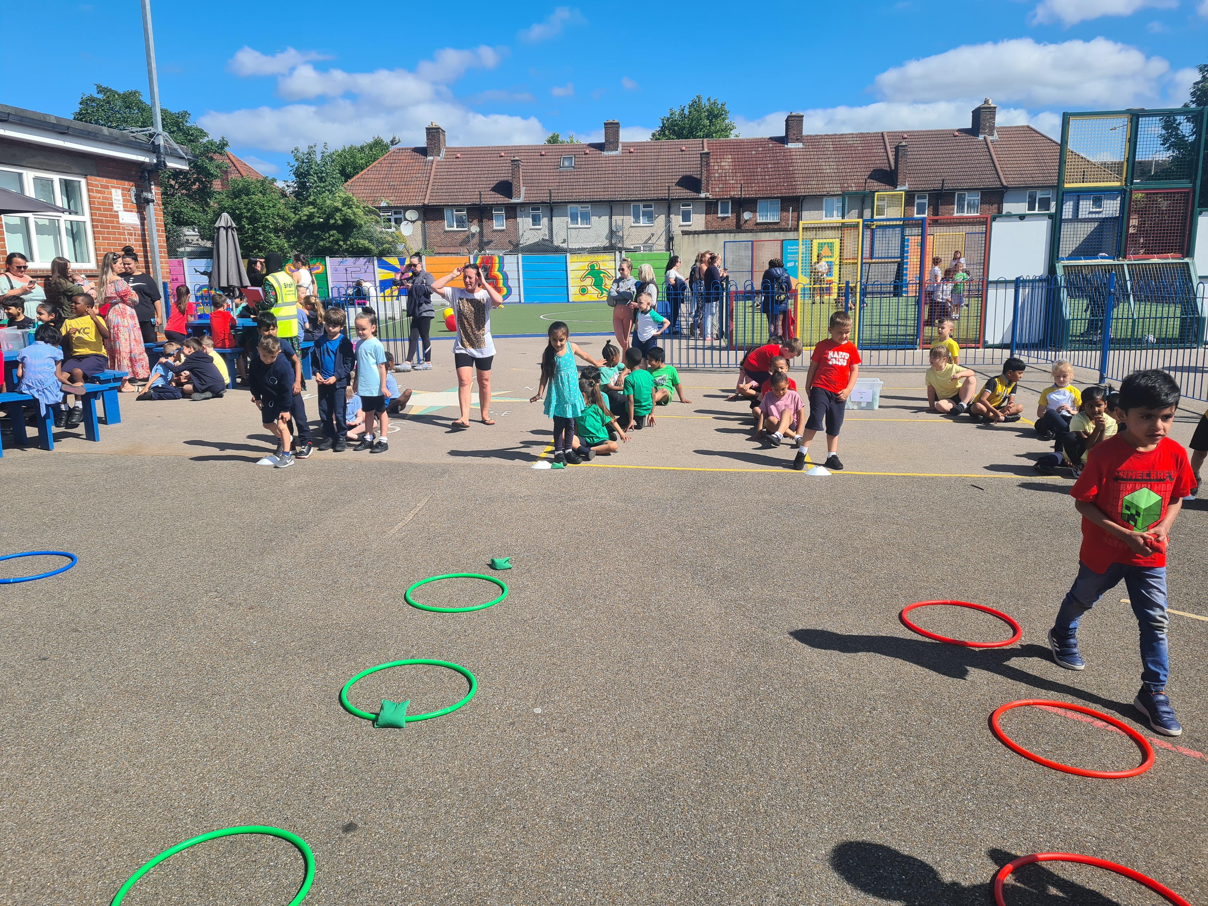 Reception classes having a lovely morning enjoying Sports day ( 23/06/23)