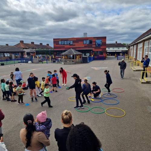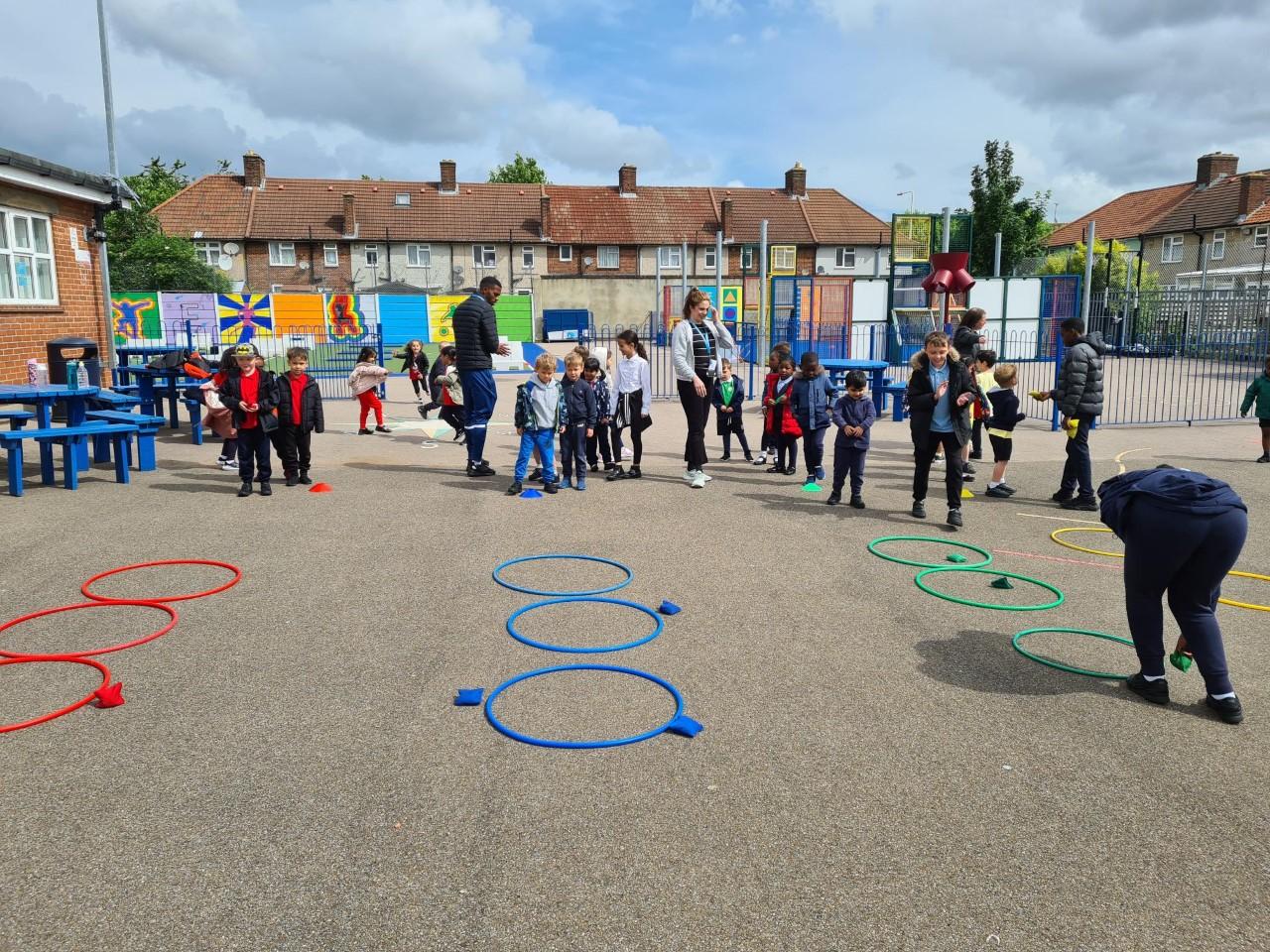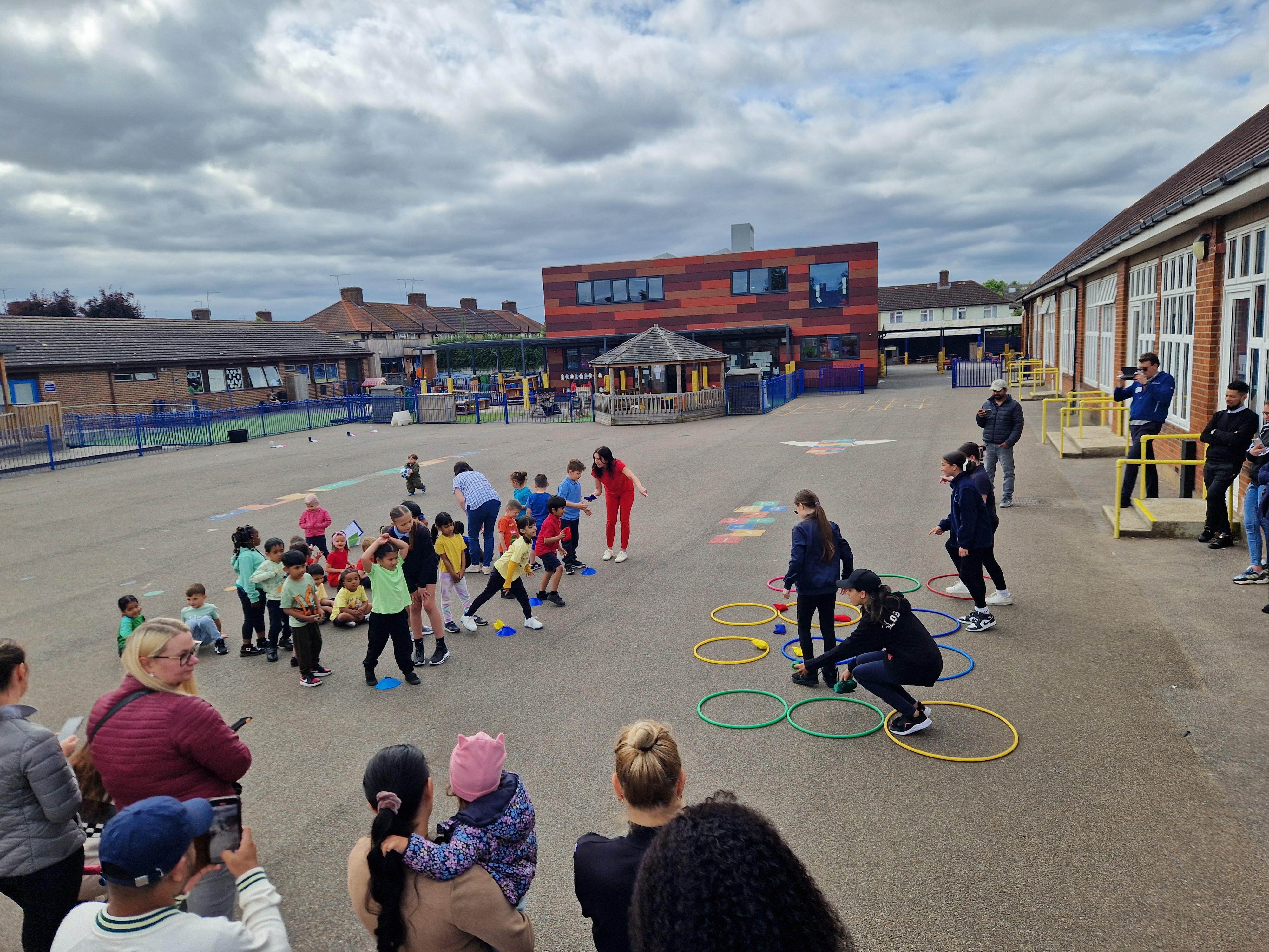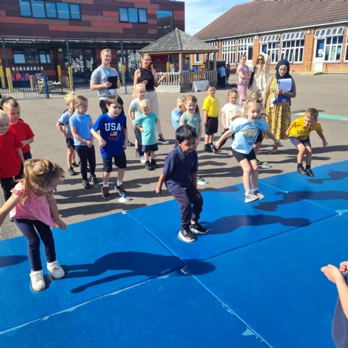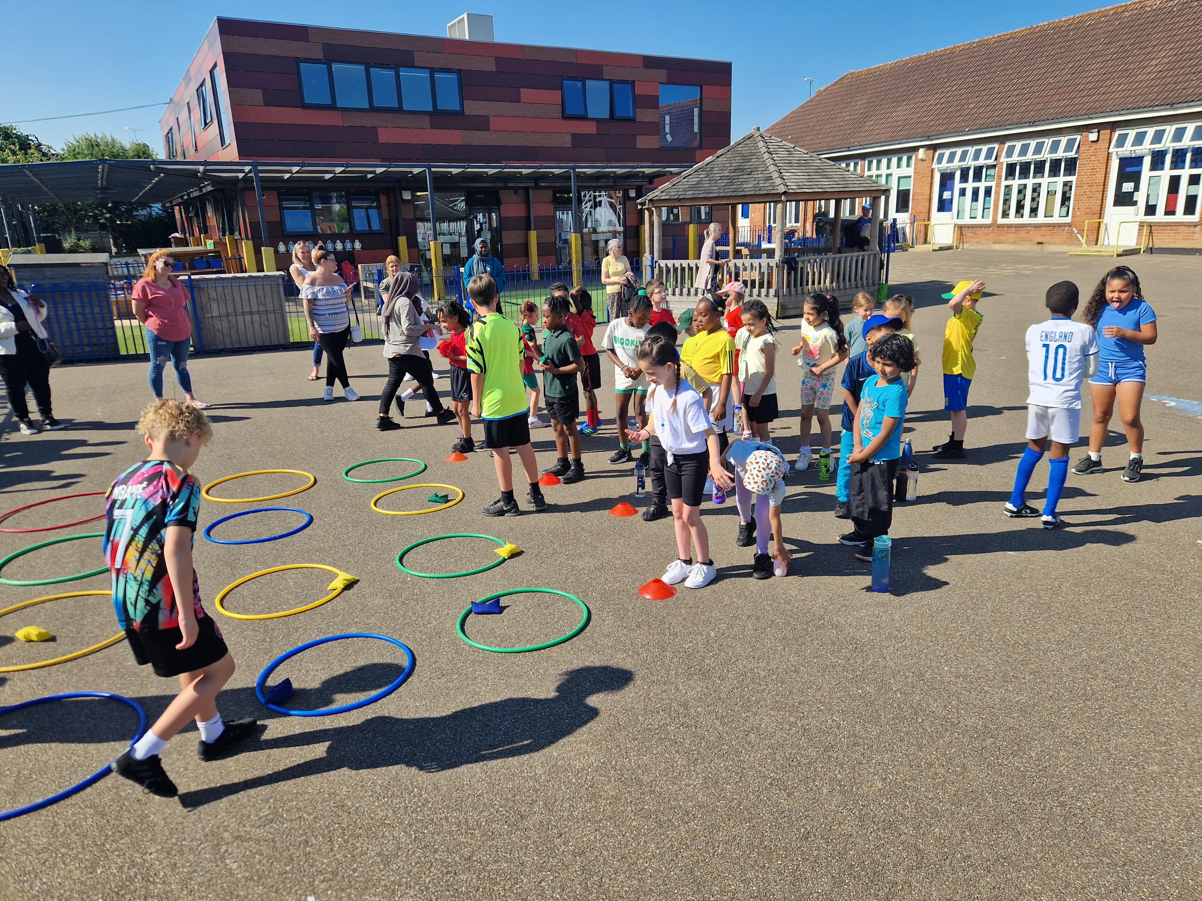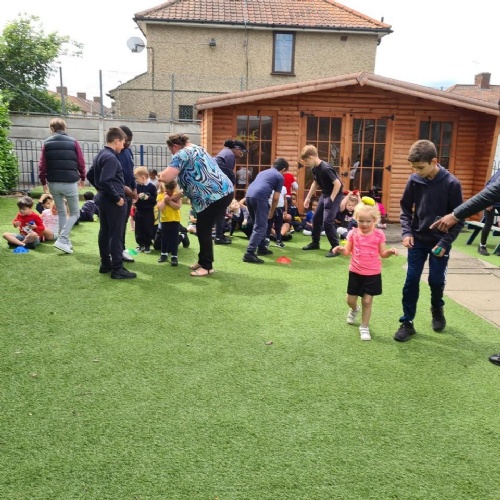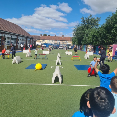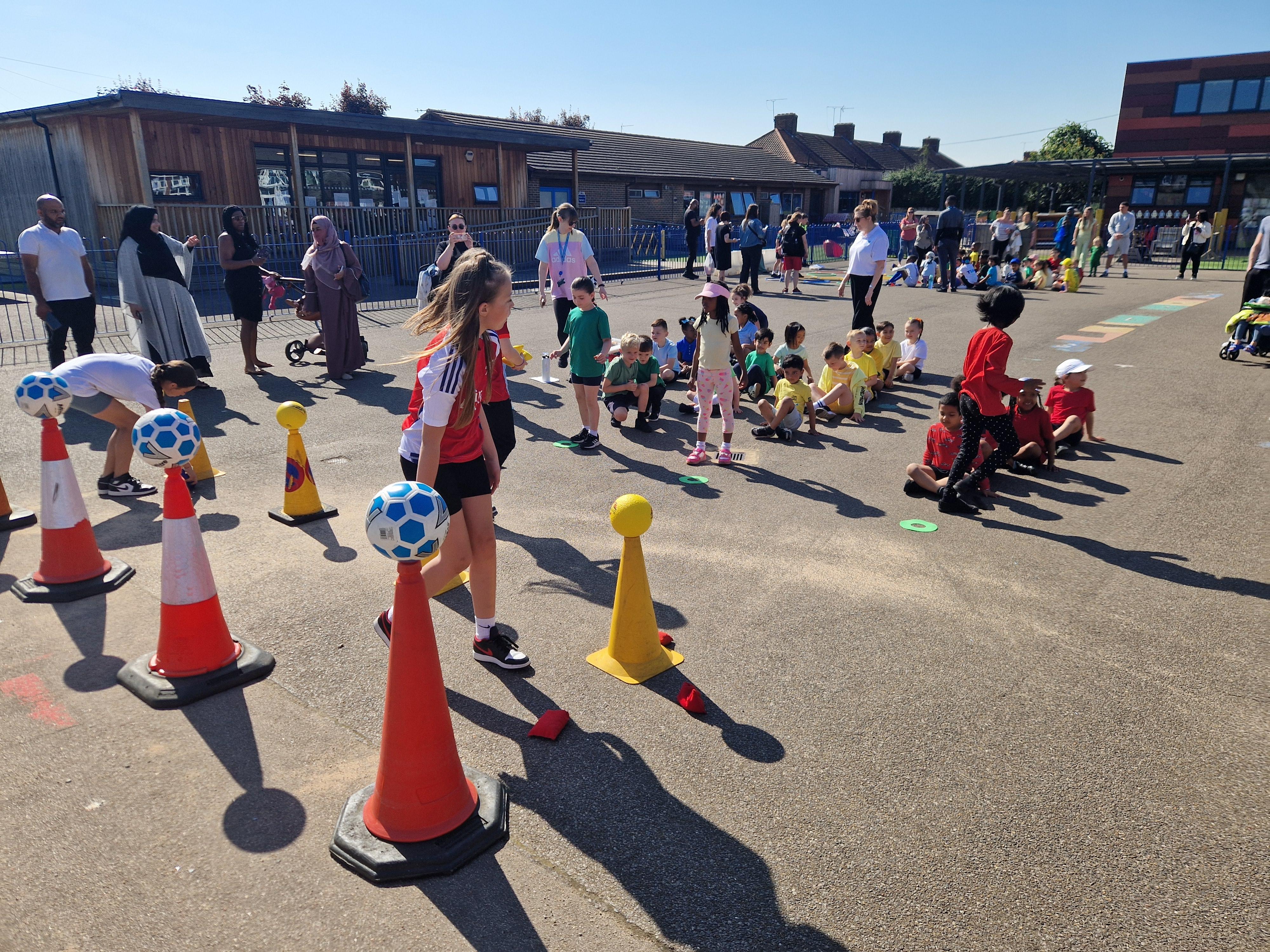 Reception classes having a lovely morning enjoying Sports day ( 23/06/23)