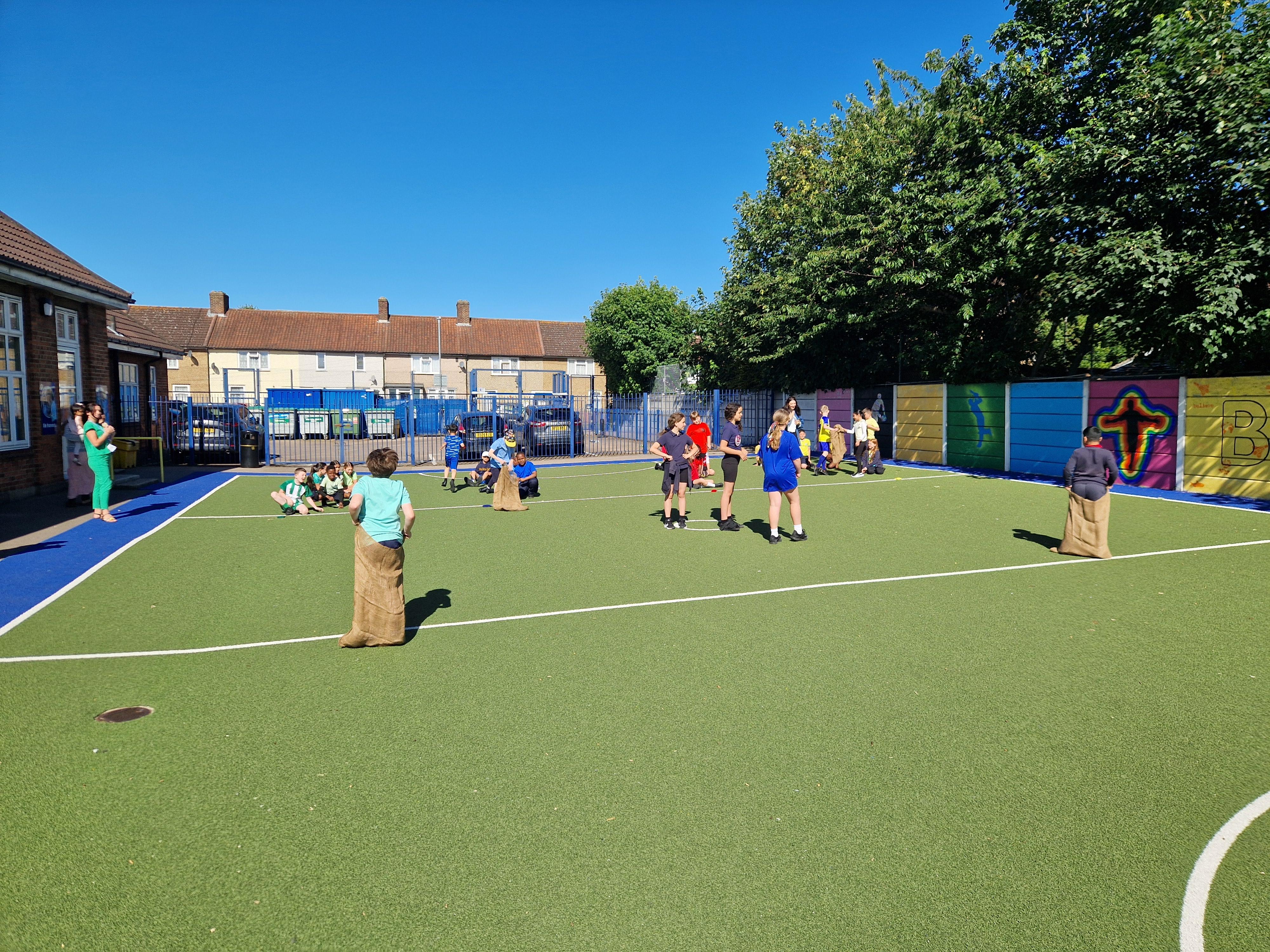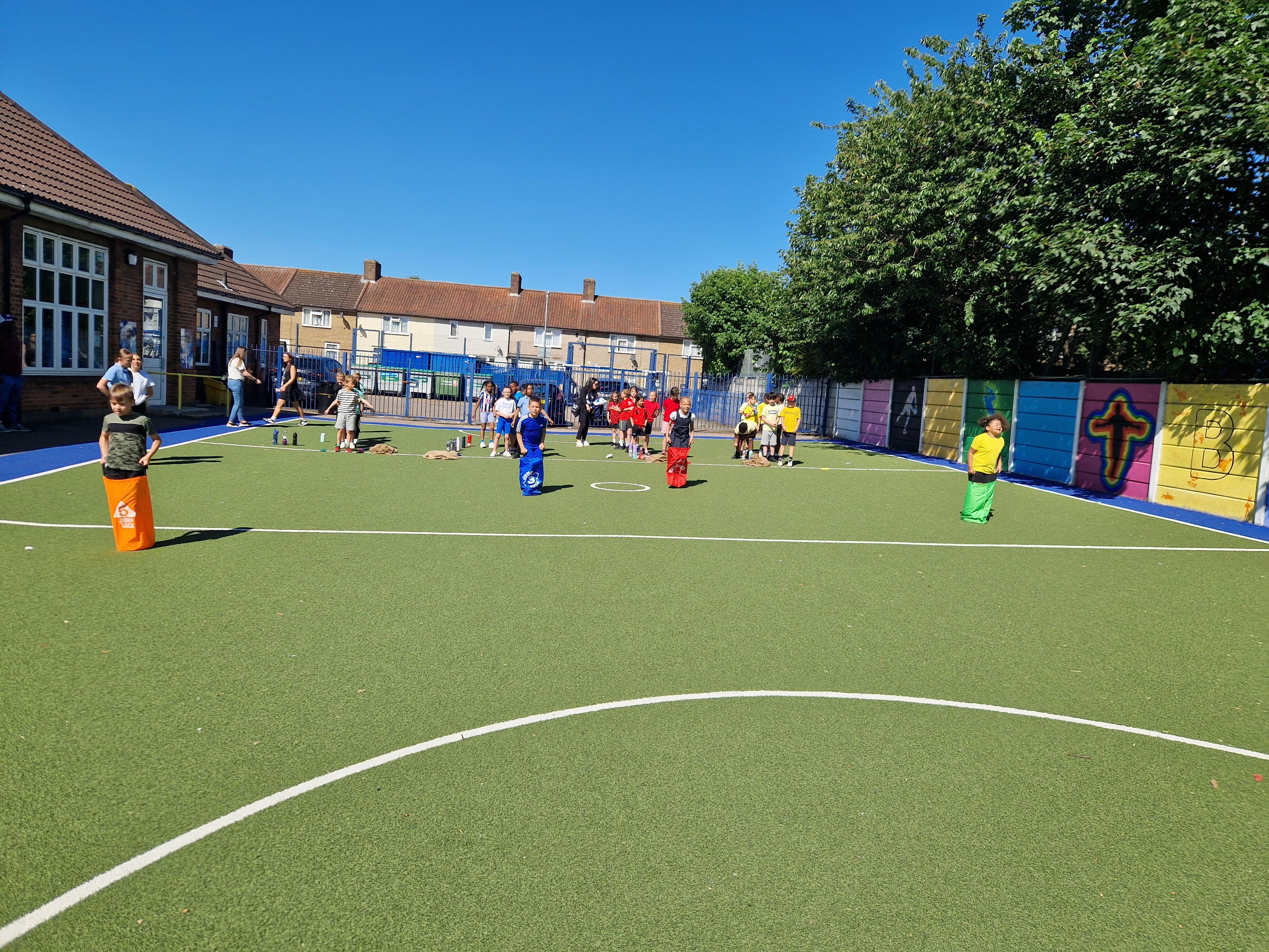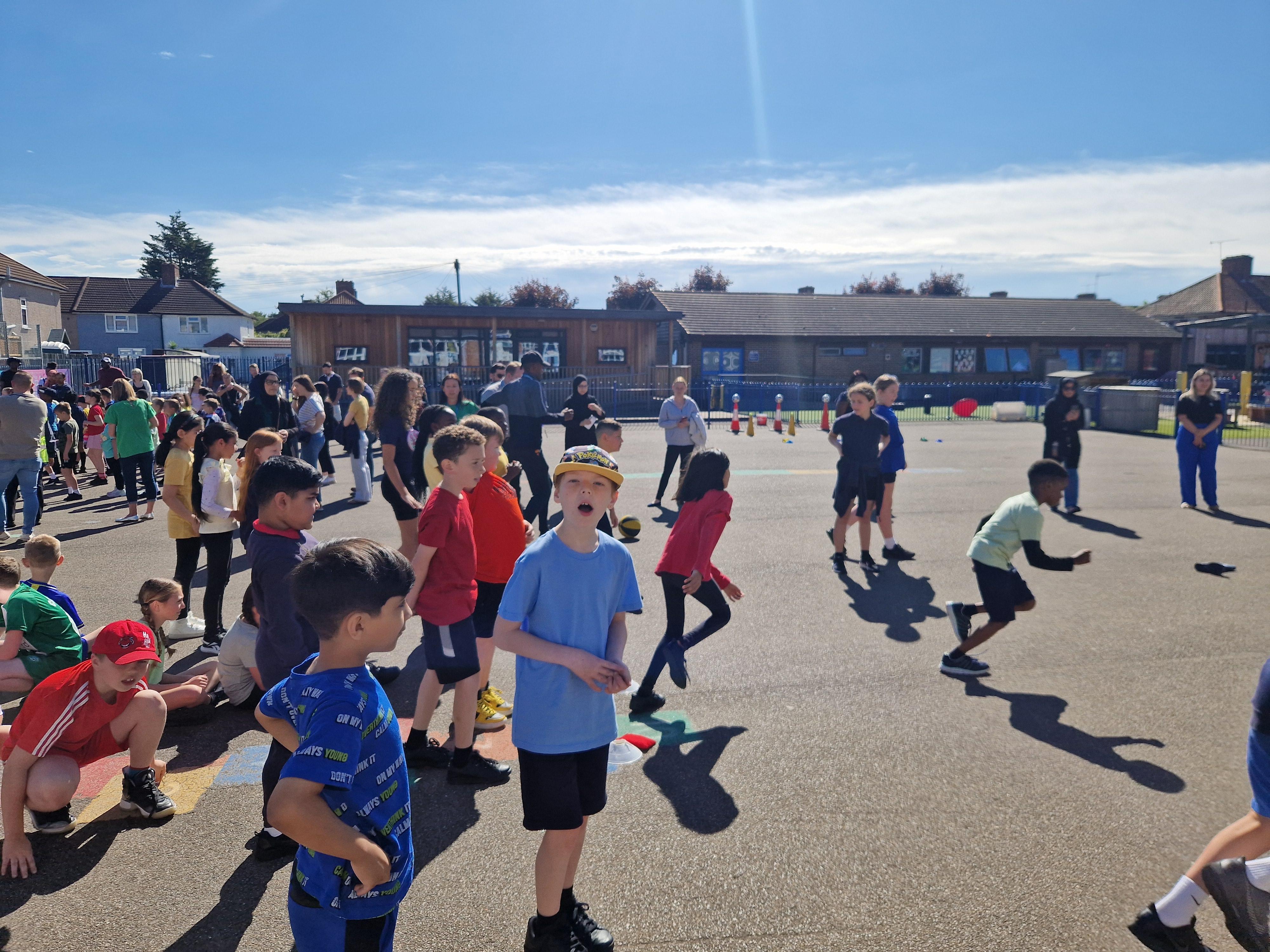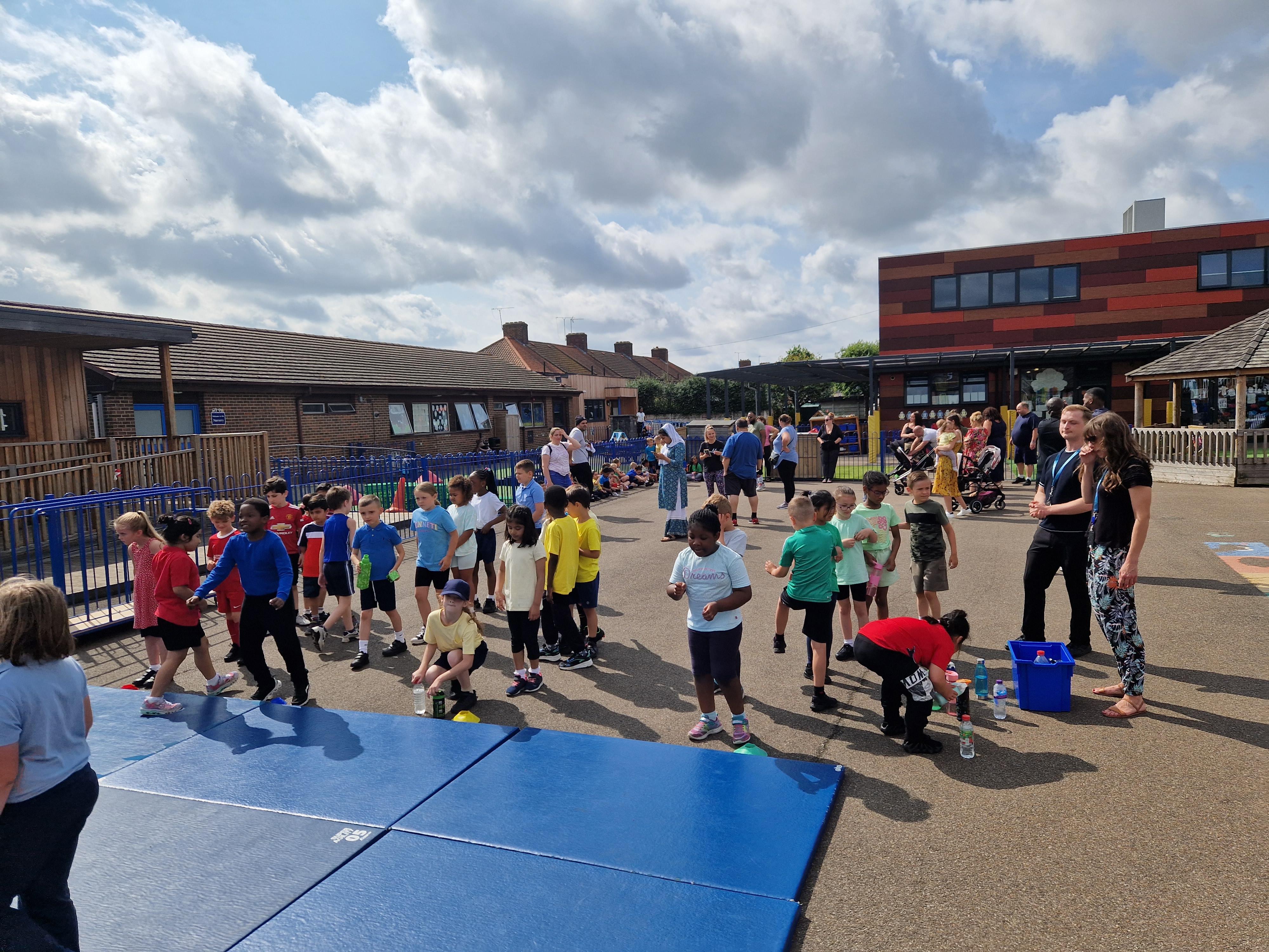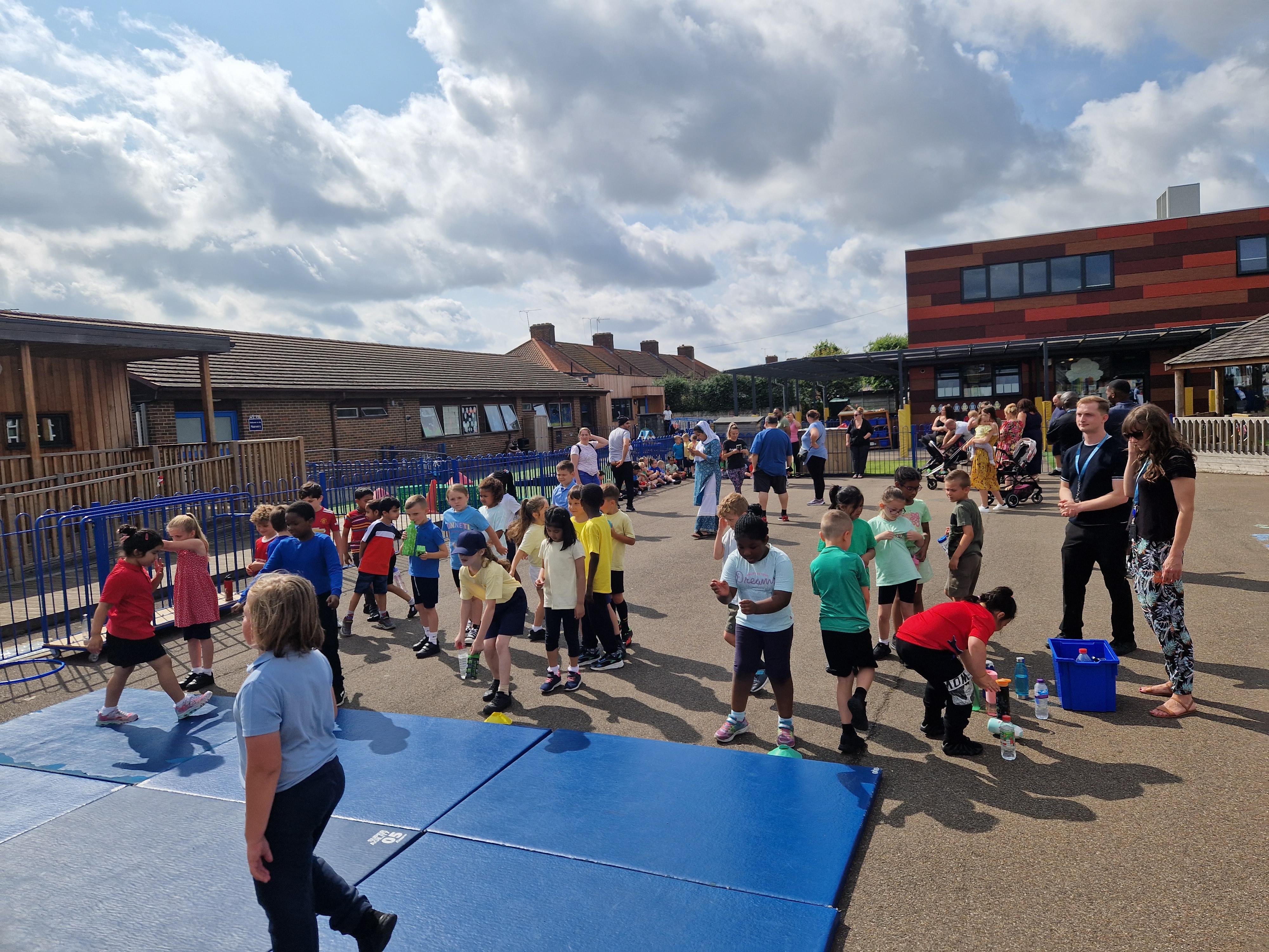 Our Yr 1 & 2 enjoying their Sports day in the sun