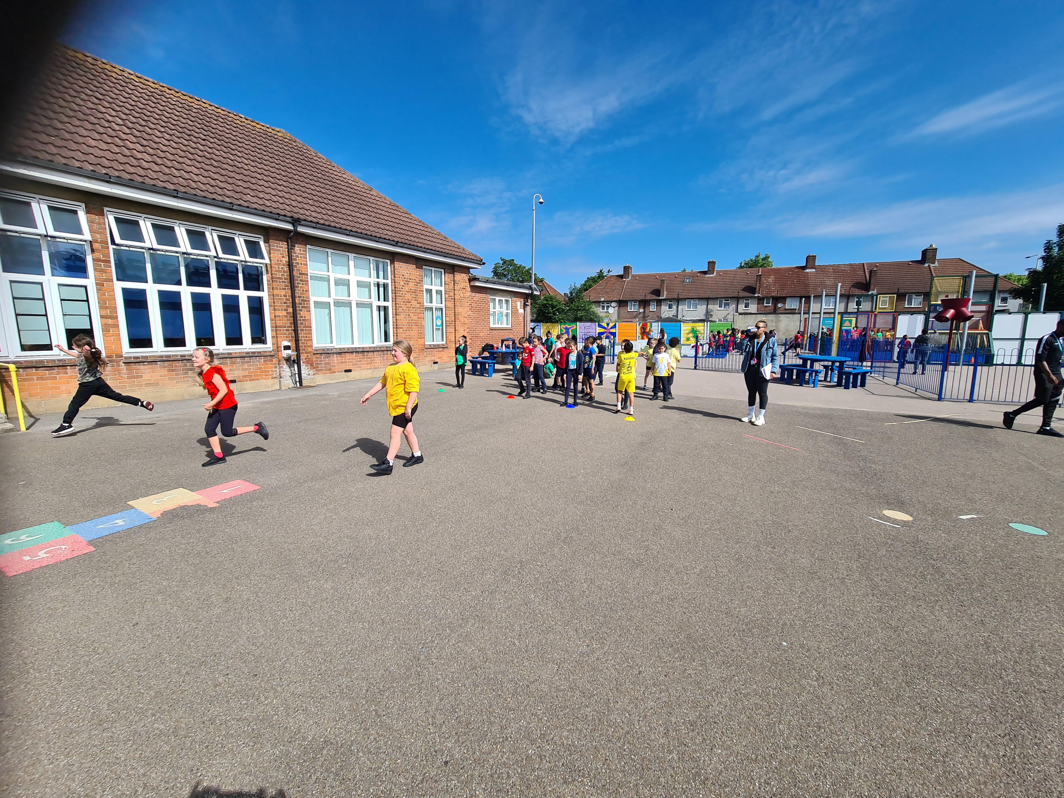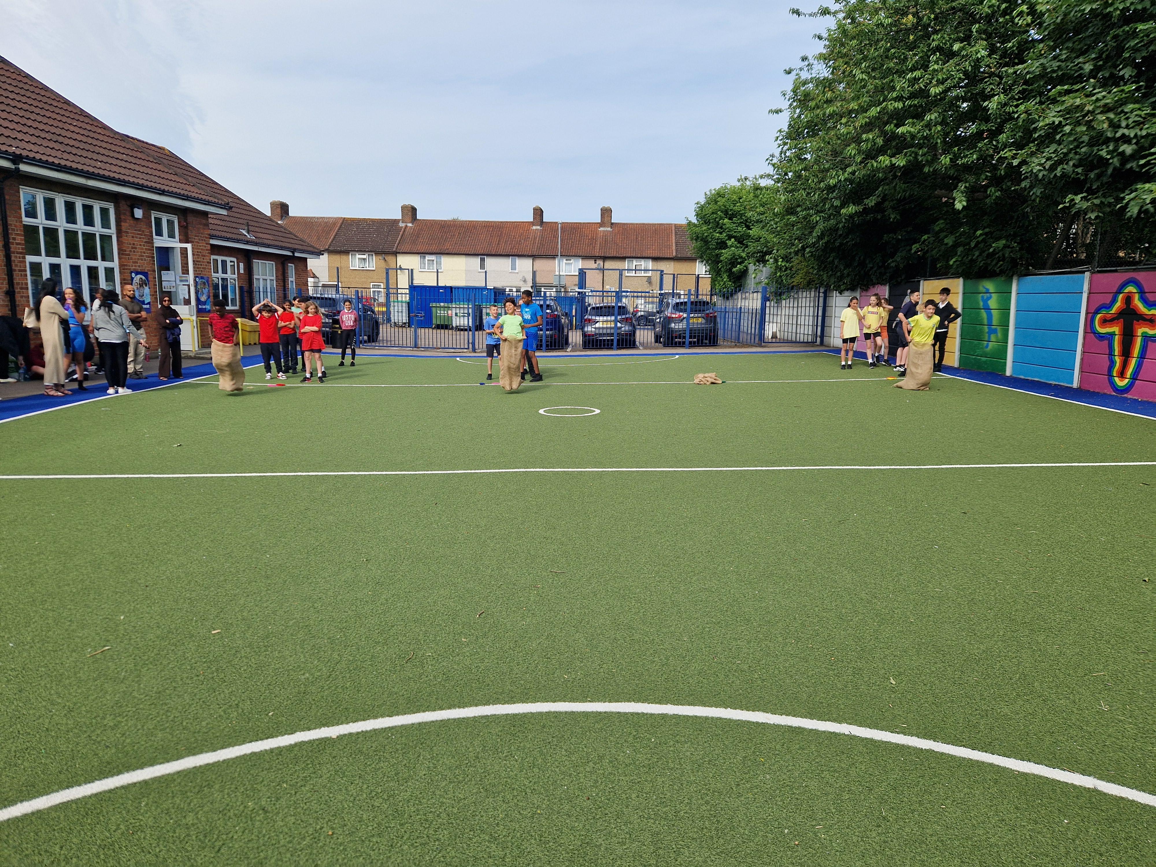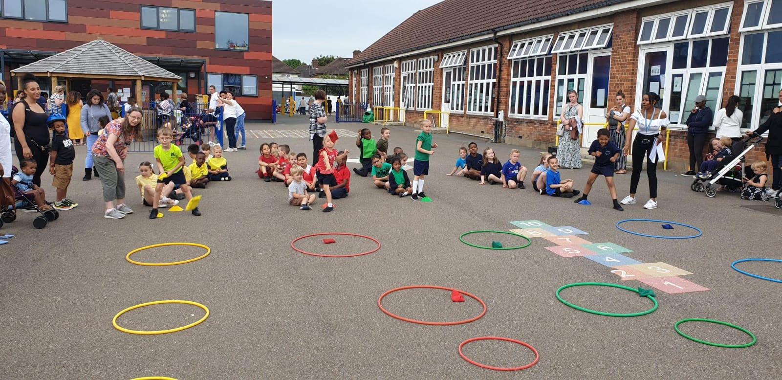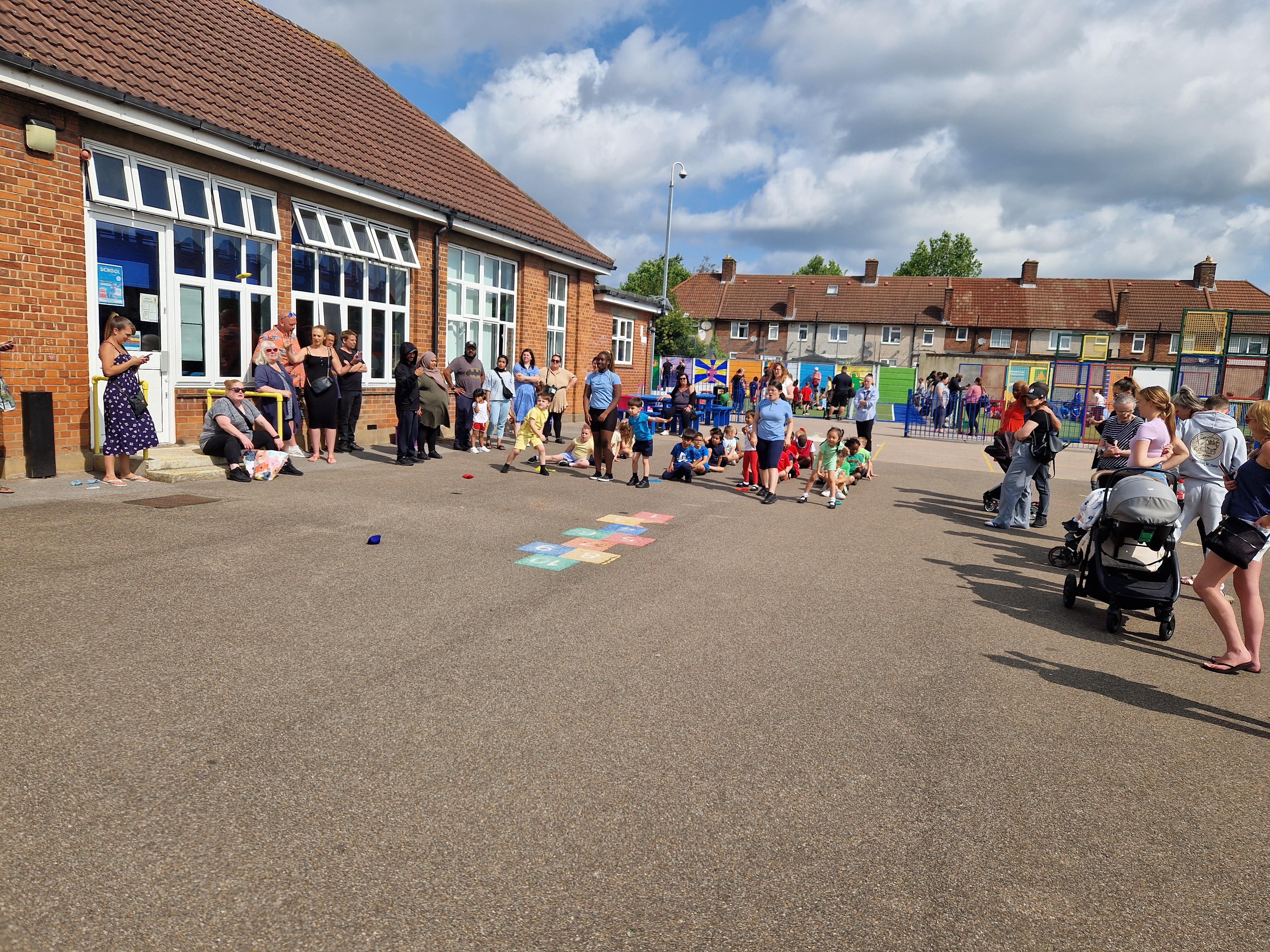 Our Yr 1 & 2 enjoying their Sports day in the sun