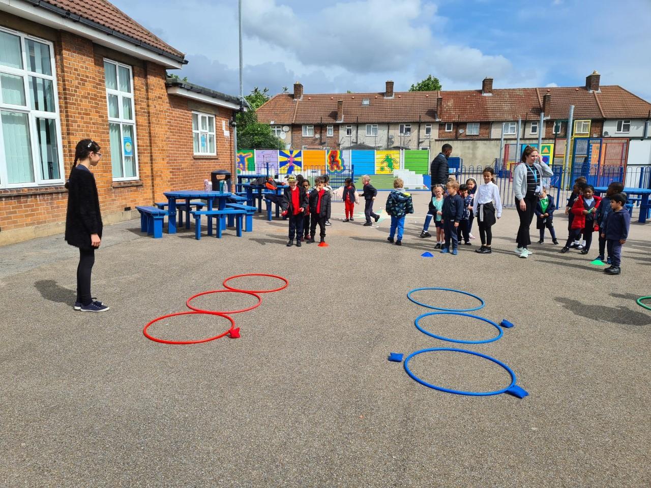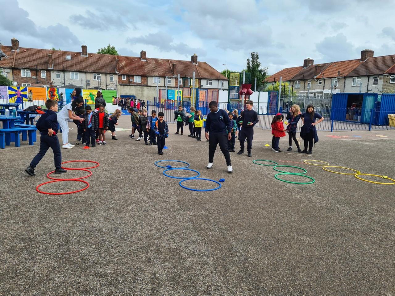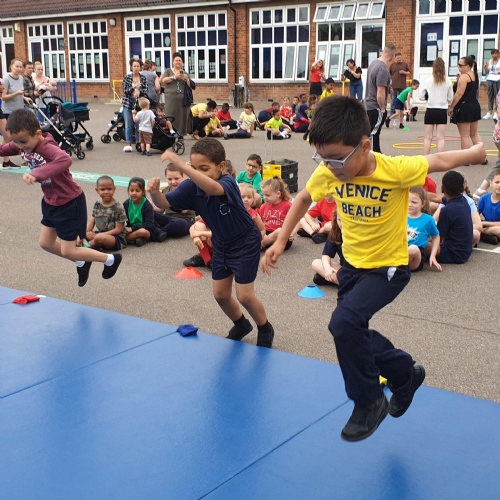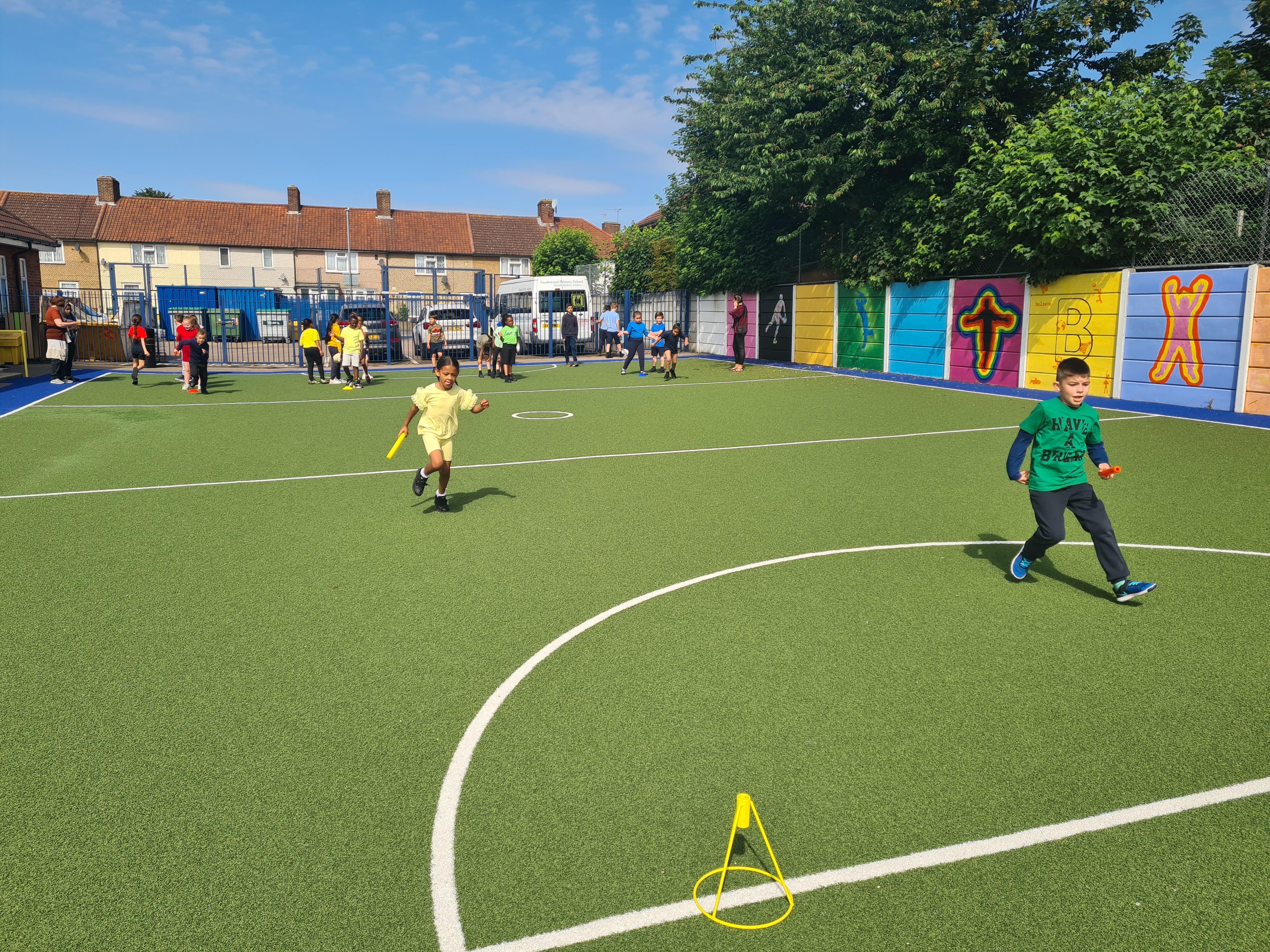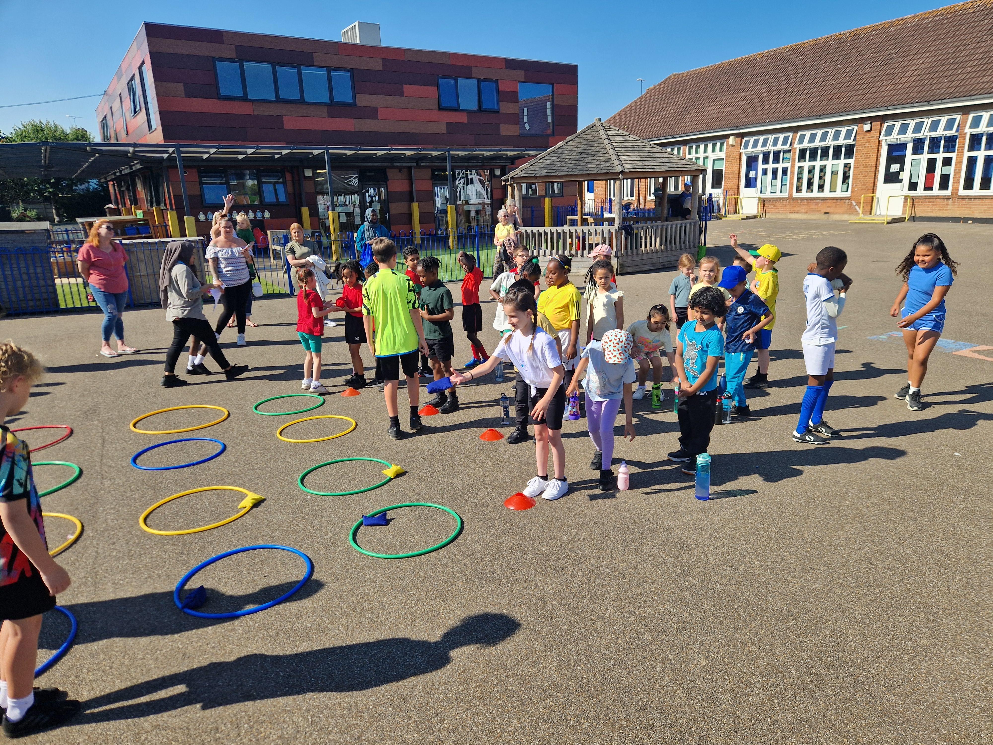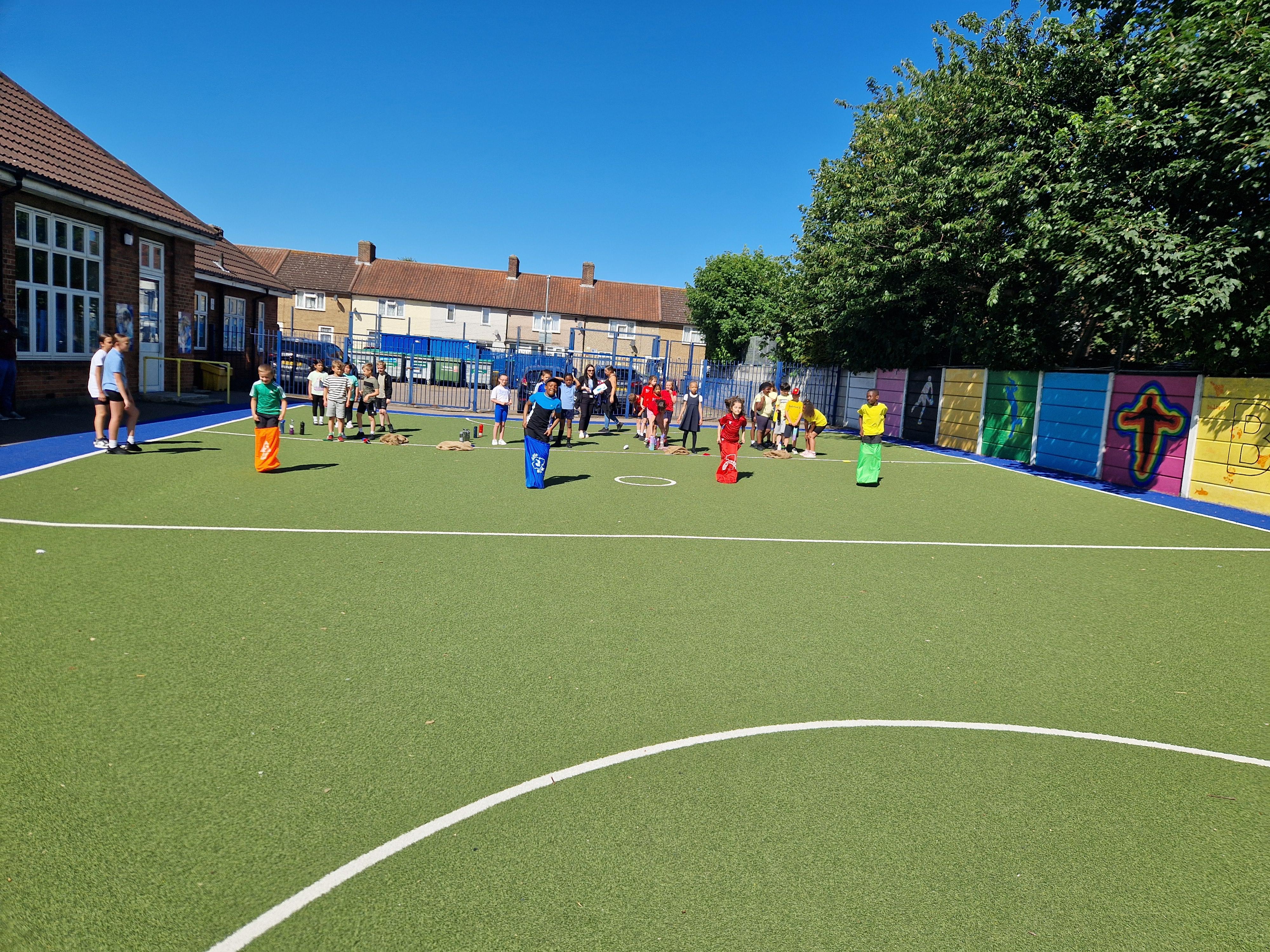 Our Yr 1 & 2 enjoying their Sports day in the sun