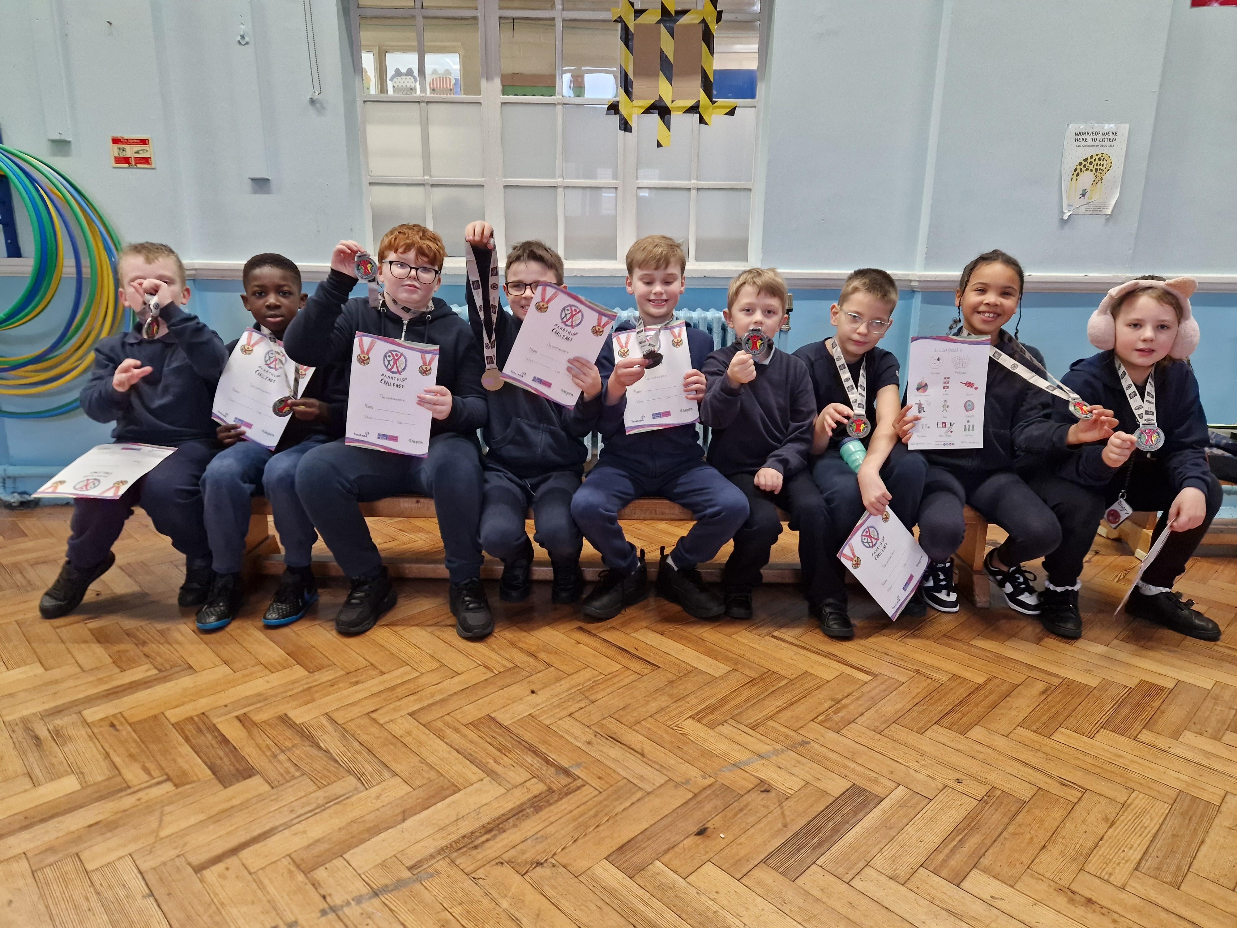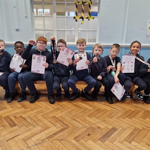 Our Yr 3 & 4 Indoor Athletics team enjoyed the day out at the Borough competition ( 13/02/24 )