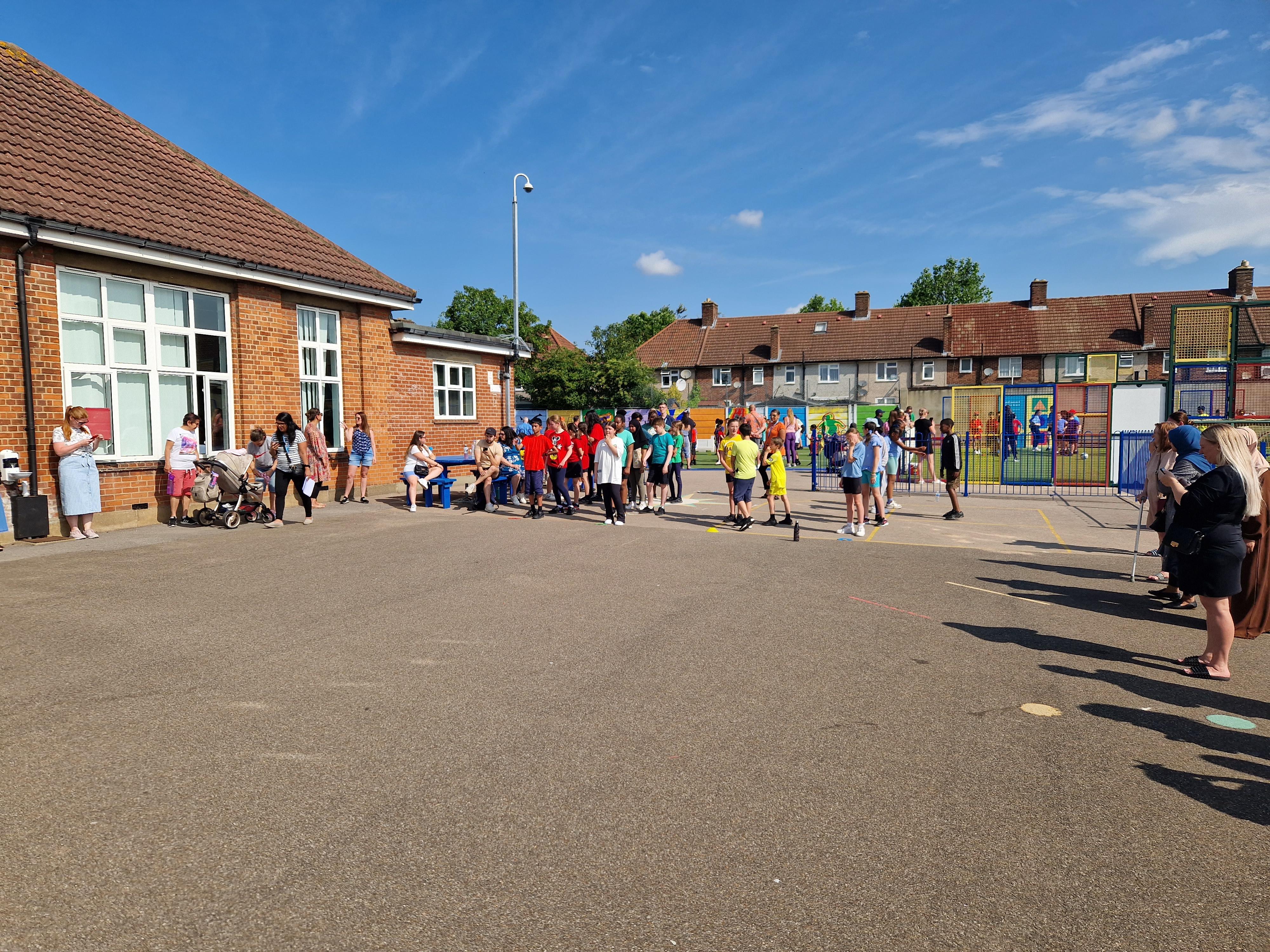 Our Yr 3 & Yr 4 Athletics teams enjoying the sun at the Borough Competition ( 15/06/22)