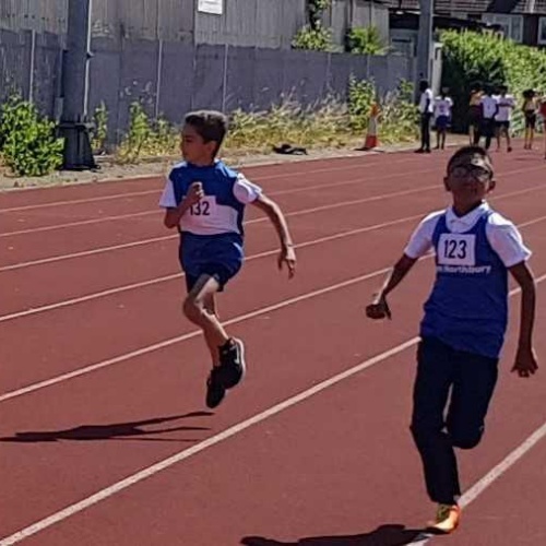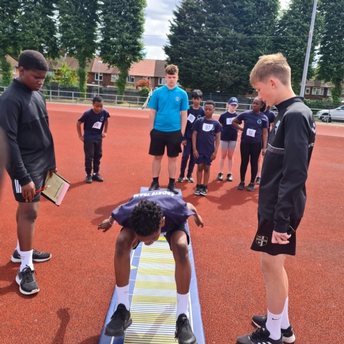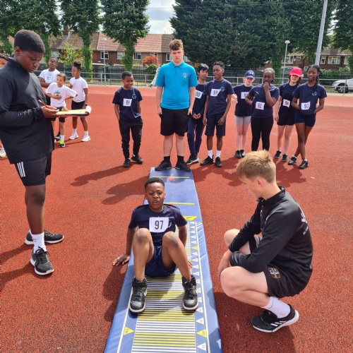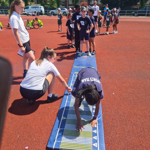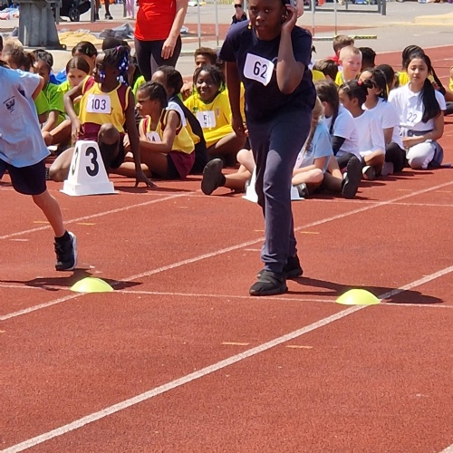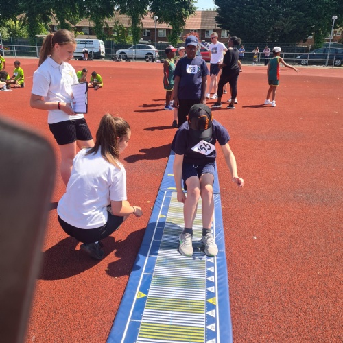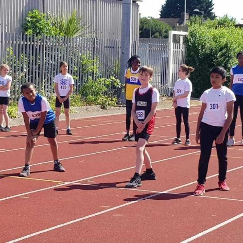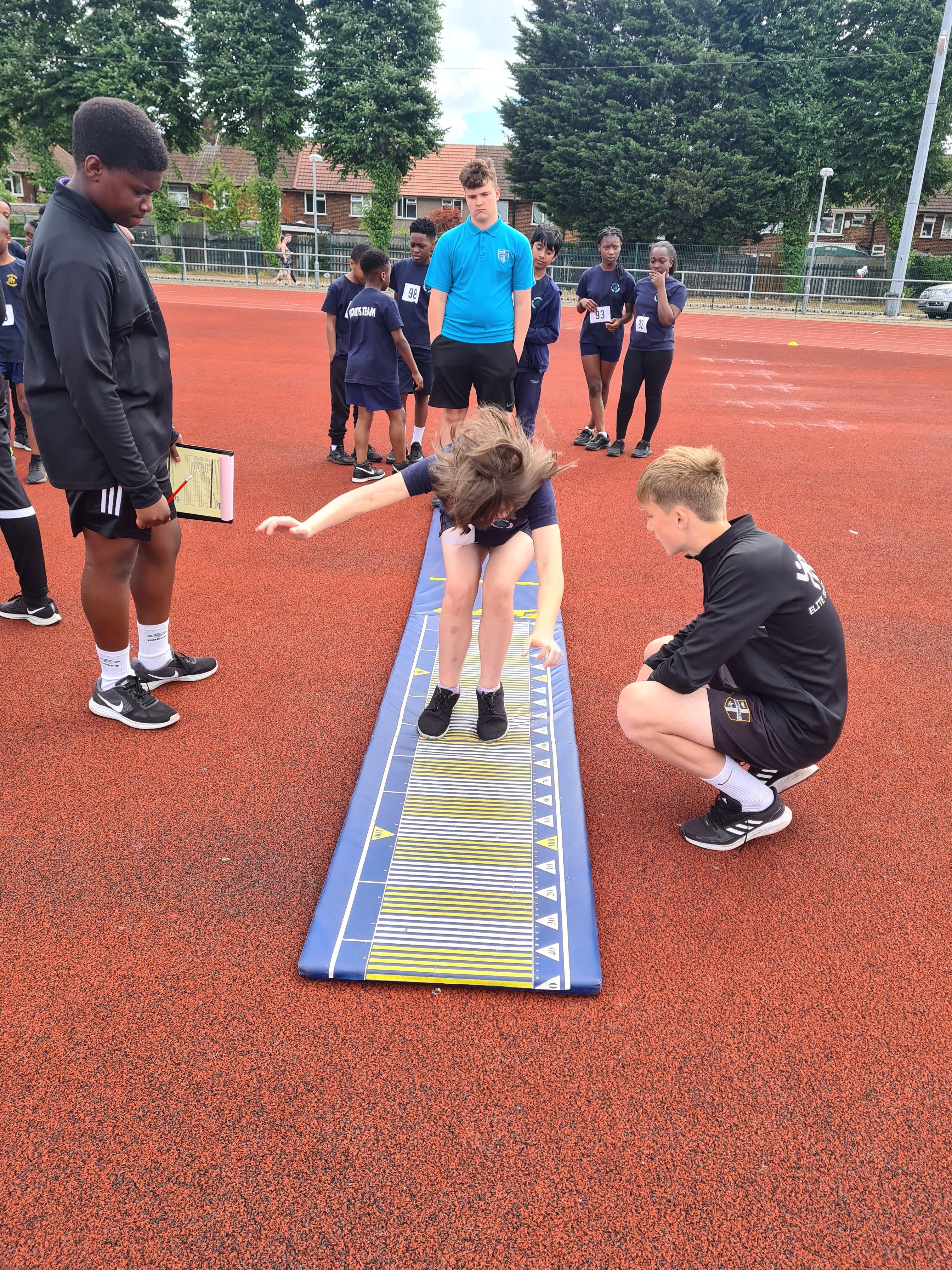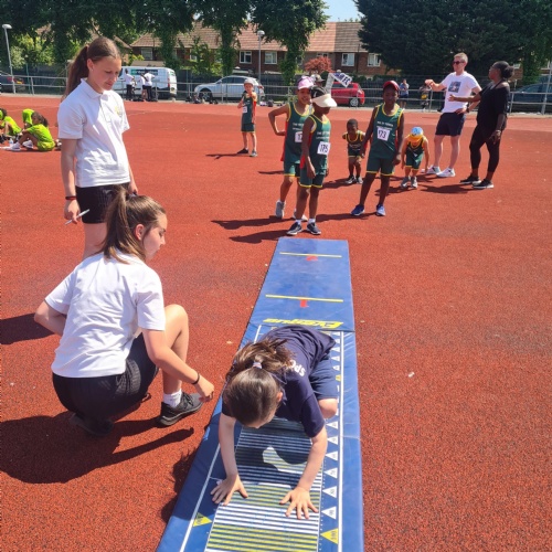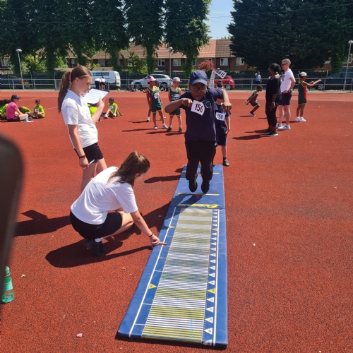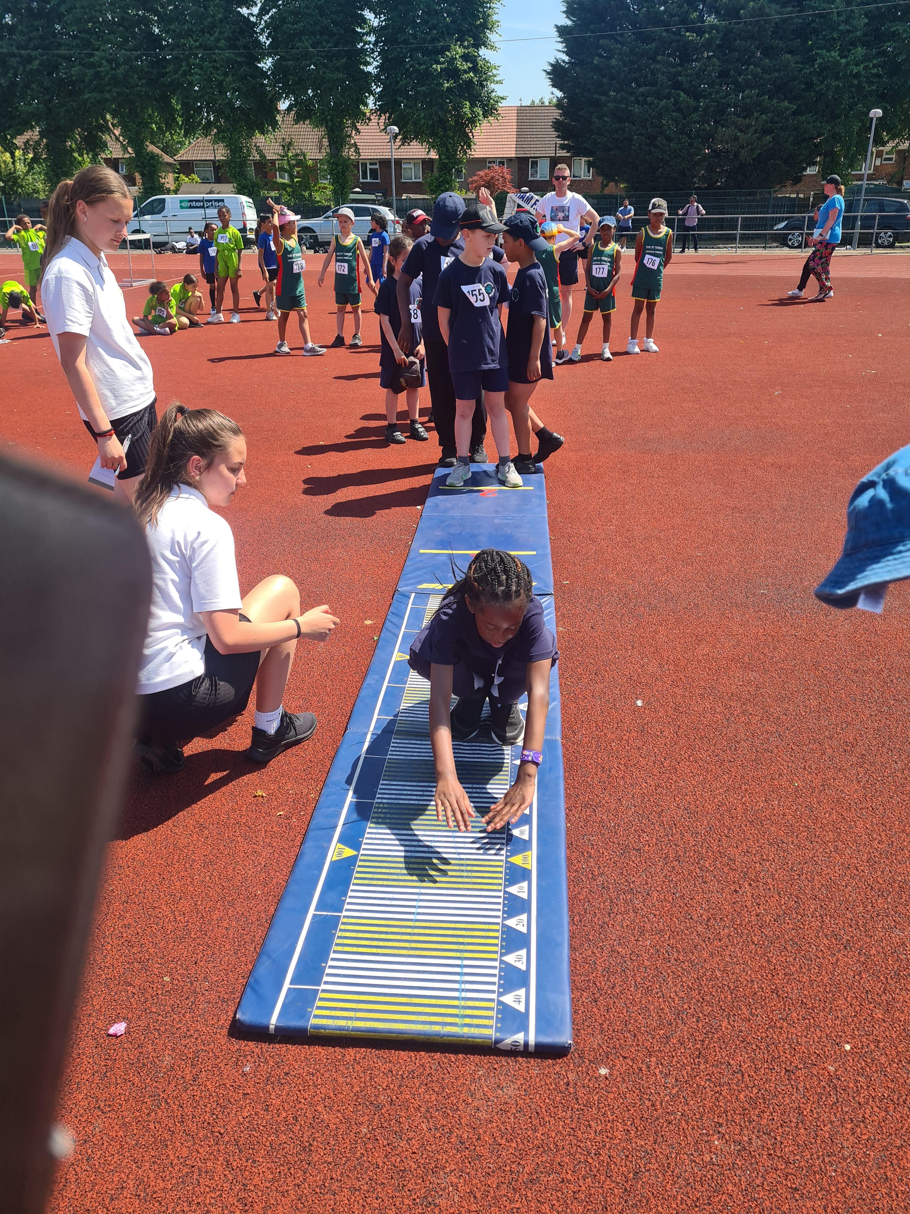 The Yr 5 & 6 Athletics team in action at the Borough Comp. ( 27/06/22)