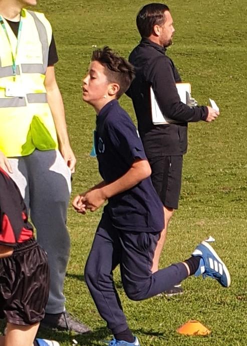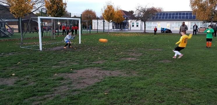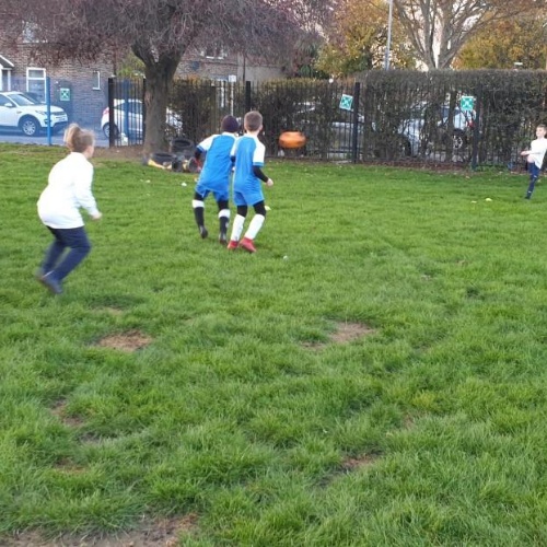 Our Yr 3 & 4 Football Team playing our local Neighbours Valence and winning 6-3 ( Desmond scoring 5 and Holly 1 ).