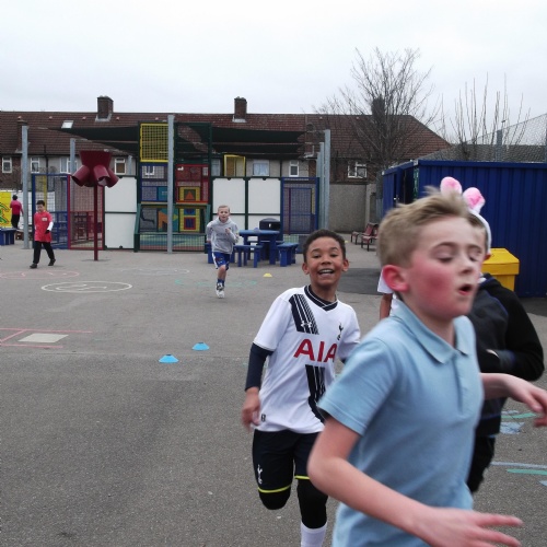 Our sports relief day! We raised over £2500 for charity with every child running a mile!
